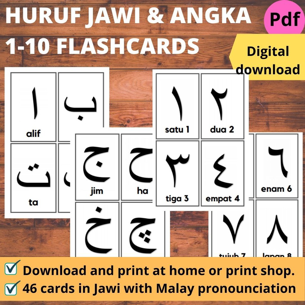 Printables Huruf Jawi Hijaiyah Arabic Number Flashcard Softcopy Pdf File Shopee Malaysia